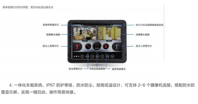 4.智能集成化設(shè)計(jì),一鍵開(kāi)啟車(chē)載系統(tǒng),AI精準(zhǔn)識(shí)別、人車(chē)防撞、車(chē)車(chē)防撞、盲區(qū)防撞等。