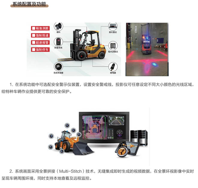1.基于360°全景環(huán)視監(jiān)控技術(shù),任意設(shè)定警戒區(qū)域、危險(xiǎn)區(qū)域大小及形狀,無(wú)死角保護(hù)車(chē)輛設(shè)備駕駛作業(yè)安全,最大偵測(cè)范圍4-5米,防撞距離掃描達(dá)20米以上,安裝投影儀可設(shè)置警戒線(xiàn),投影光線(xiàn)在地面形成一個(gè)安全范圍