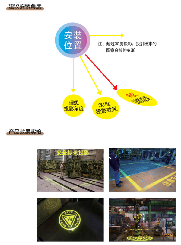 ABTY系列工業安全警示儀我公司自主研發,產品具有智能化,信息化等科技技術。是針對工業特殊環境和使用條件而單獨設計的,產品結構強度高、耐高溫、防水防塵、抗震、防掉落等特點。采用進口光源,使用壽命長、投影距離遠等優點。可自行定義警示區域大小和形狀、警示內容(如:“注意安全”、“危險區域”)等。廣泛用于冶金、有色、化工、煤礦、建筑等行業,是現代廠礦企業安全生產的重要輔助產品,為您的安全生產保駕護航。